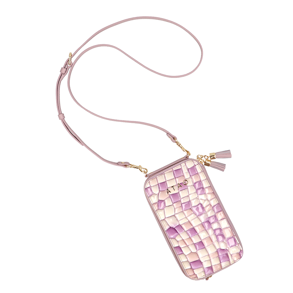 ATAO(アタオ)(あたお)清爽なホワイトカラーに淡いピンクのバラとラベンダーが甘く優しく映える「ロージーラベンダー」がアミュレット?ヴィトロ(あみゅれっと)(お財布ポシェット)(お財布スマホポシェット)(モバイルポシェット)(ウォレットポシェット)(クラッチバッグ)(モバイルバッグ)(スマホショルダー)(スマホポシェット)(肩掛け)(斜め掛け)(ショルダーバッグ)(マイクロバッグ)(お財布スマホポシェット)に仲間入り。透明感と潤いを感じるステンドグラスのようなイタリアレザーは手に取る度に花の息吹に触れているような爽やかな気持ちにさせてくれます。ふんわりとほのかに香る甘いフレグランスのようなATAO至上最も甘いオリジナルカラーです。