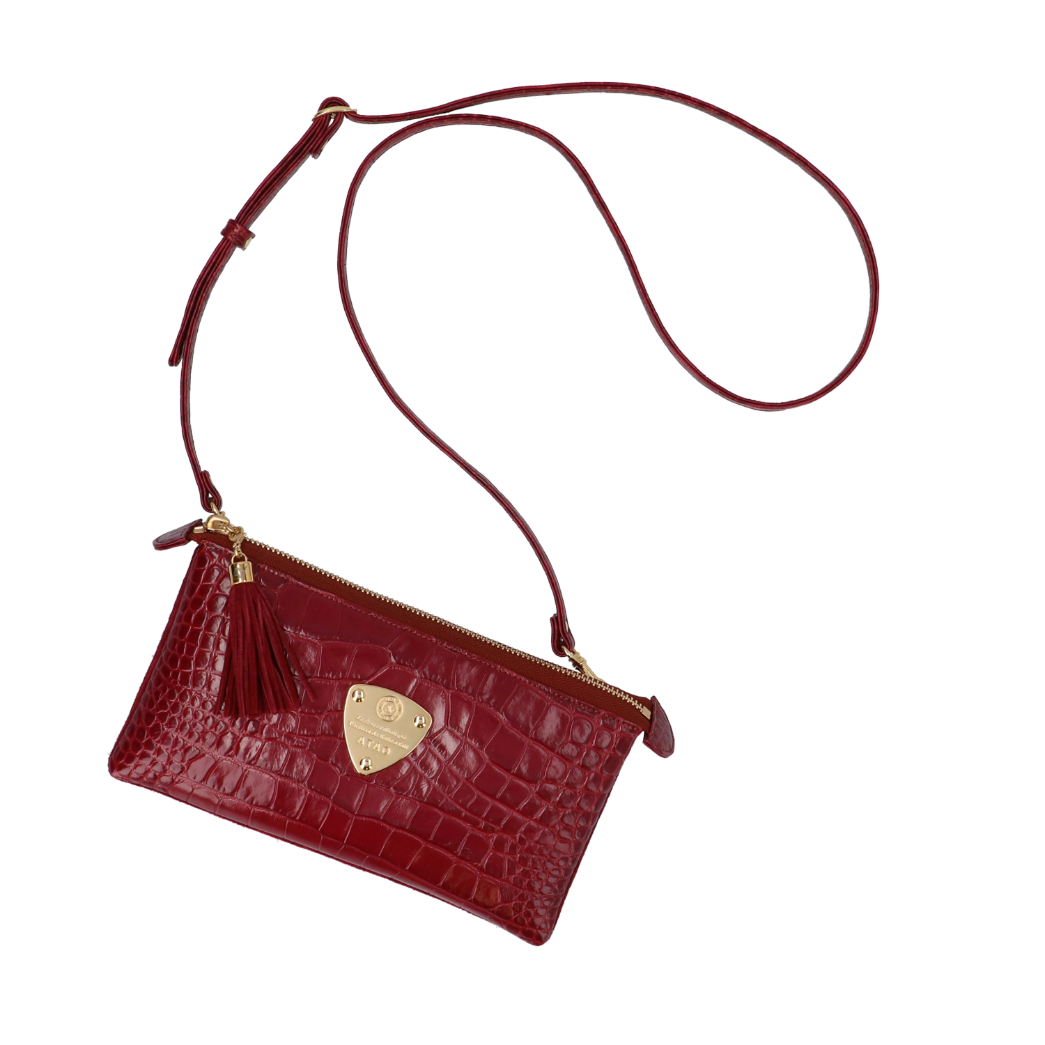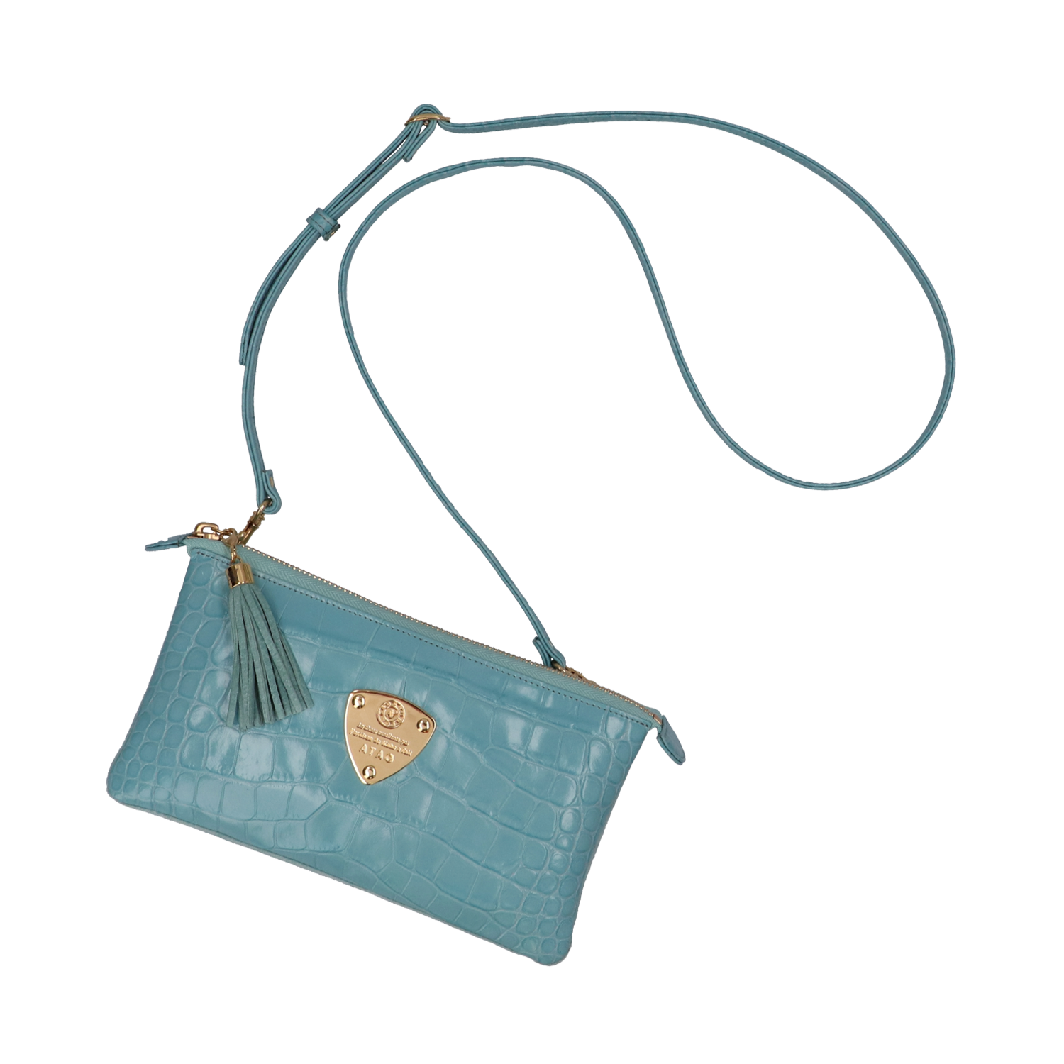 イタリア生まれのエンボスレザー(型押し)を贅沢に使用した鮮やかな発色が特徴のATAO(アタオ)のお財布ポシェット(ウォレットポシェット)(クラッチバッグ)(ショルダーバッグ)(肩がけ)(斜め掛け)『ブーブー?クラッシー』。(ブーブークラッシー)(ぶーぶーくらっしー)国内ではなかなか目にしない独創的で大胆なカラーリングが魅力。(イタリアンレザー)(牛革素材)(カウレザー)(イタリアレザー)