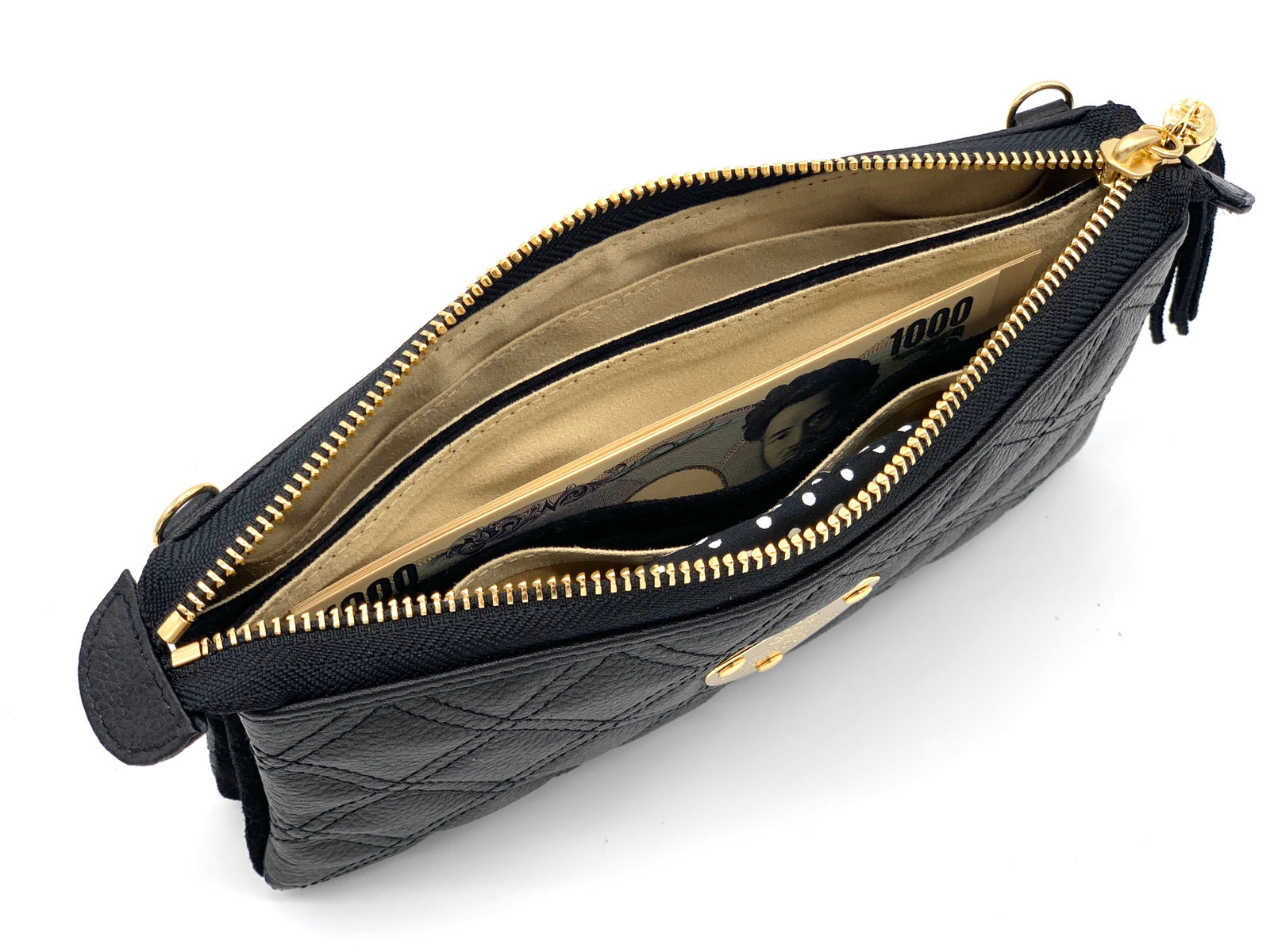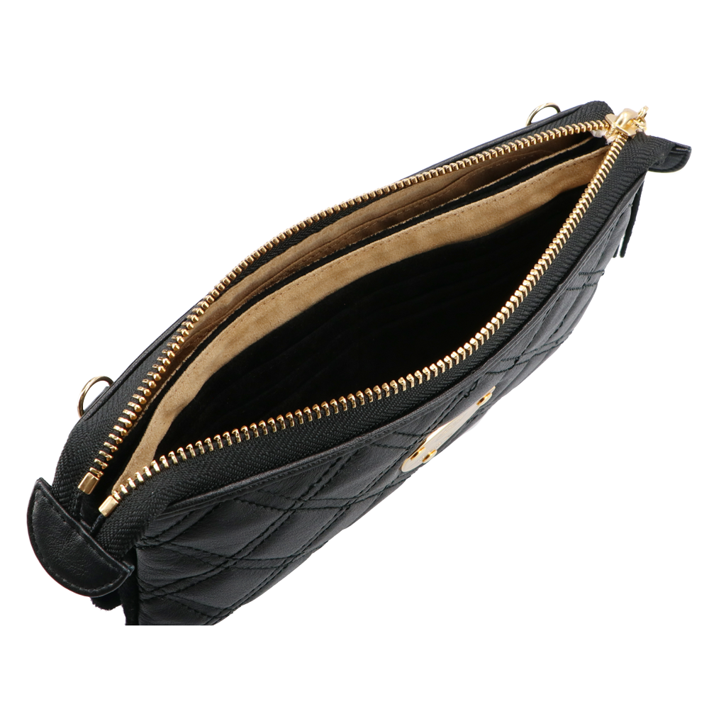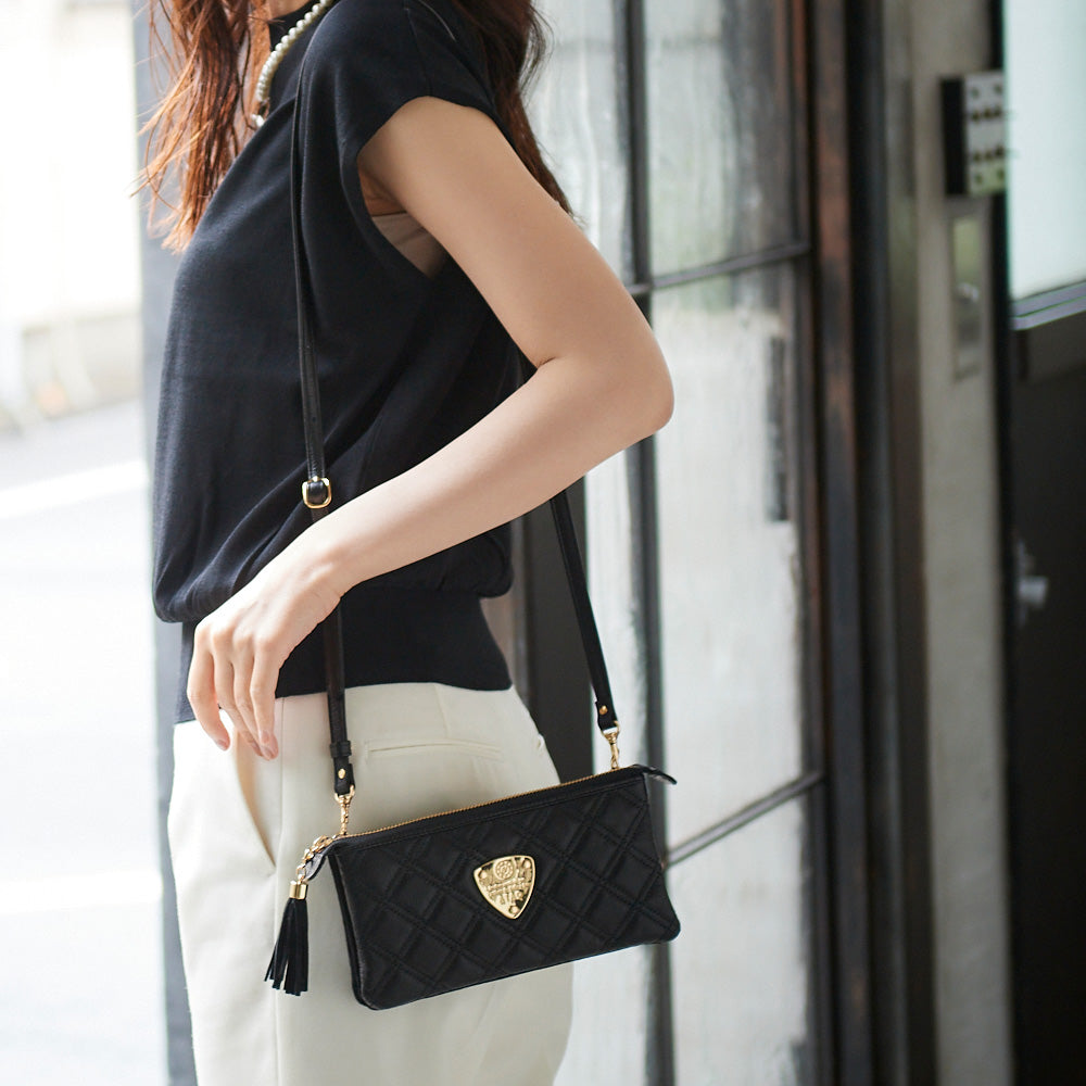 ゛運命のダイヤモンド“がテーマの最高級キルティングレザーでお仕立てしたATAO(アタオ)(あたお)のお財布ポシェット『ブーブー/ブラックダイヤ』。(ウォレットポシェット)(クラッチバッグ)(肩掛け)(斜め掛け)(ショルダーバッグ)(マイクロバッグ)(お財布スマホポシェット)(牛革素材)(カウレザー)(キルティング)