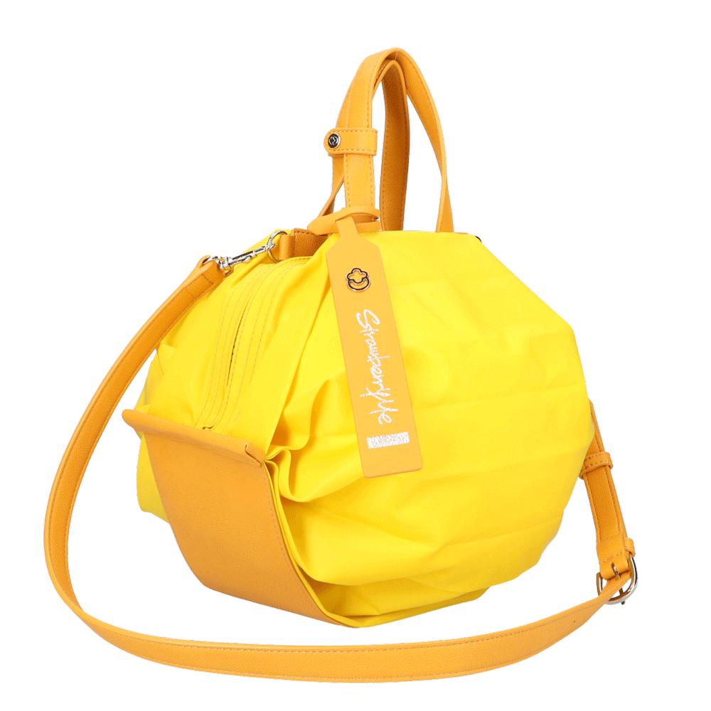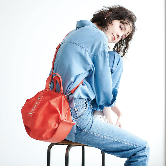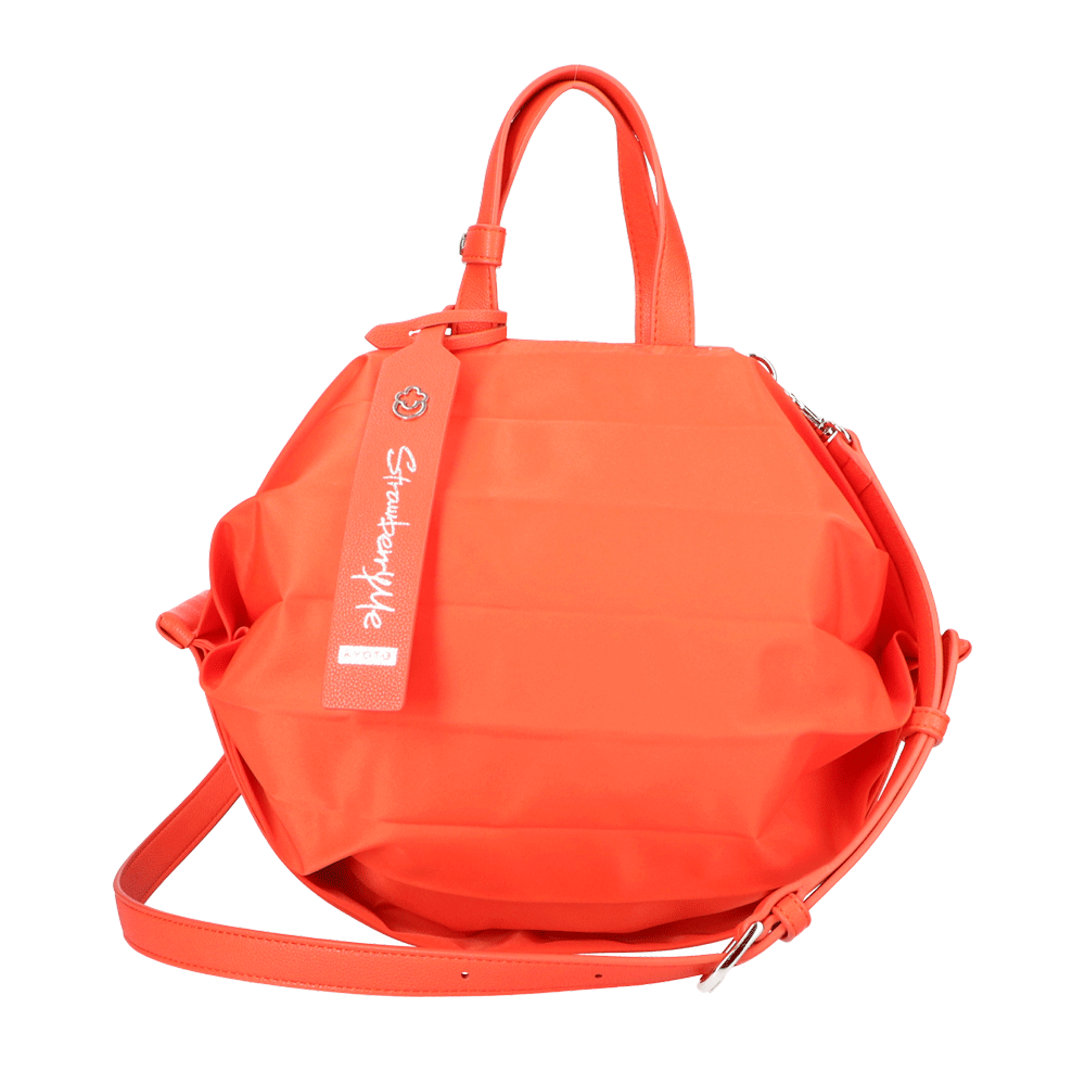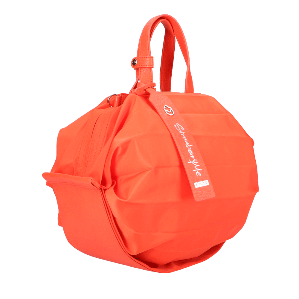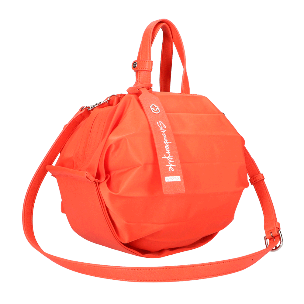 StrawberryMe(ストロベリーミー)(すとろべりーみー)の撥水ナイロン素材の軽量バッグ『チョウチン?M 』。(ちょうちん)(ハンドバッグ)(ショルダーバッグ)(肩がけ)(斜め掛け)(ミディアムバッグ)(ミドルバッグ)(撥水性)(ヴィーガンレザー)(サステナブル素材)(サスティナブル)京都の夜を美しく照らす「提灯」からインスパイアされたバッグ。