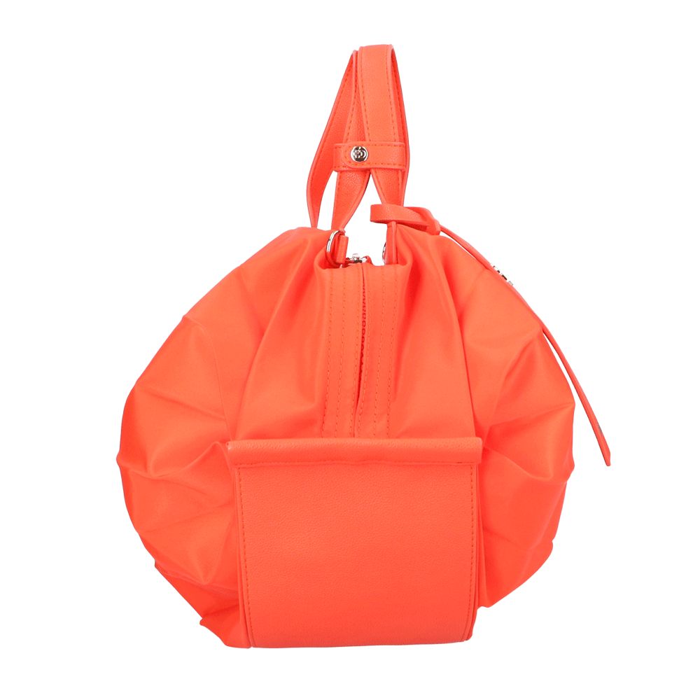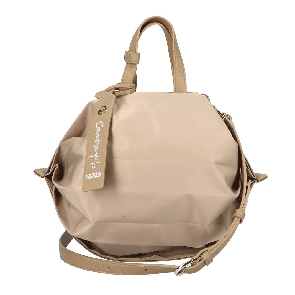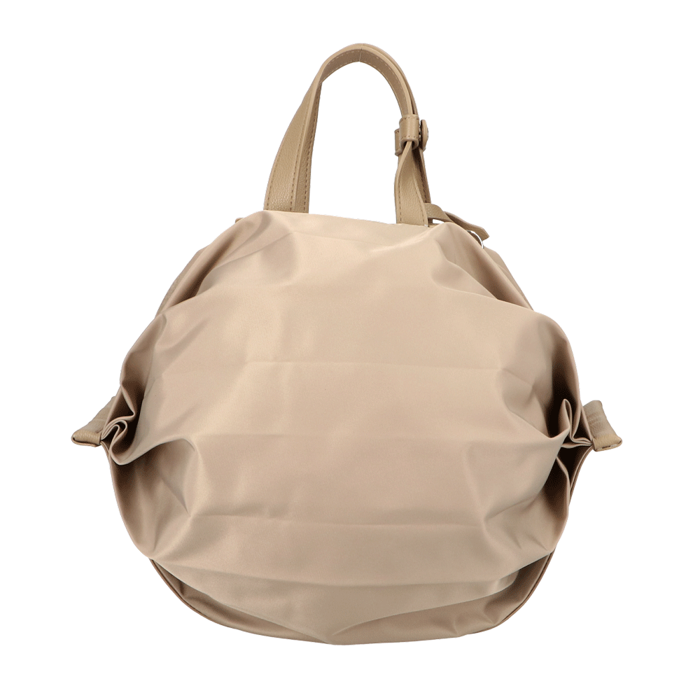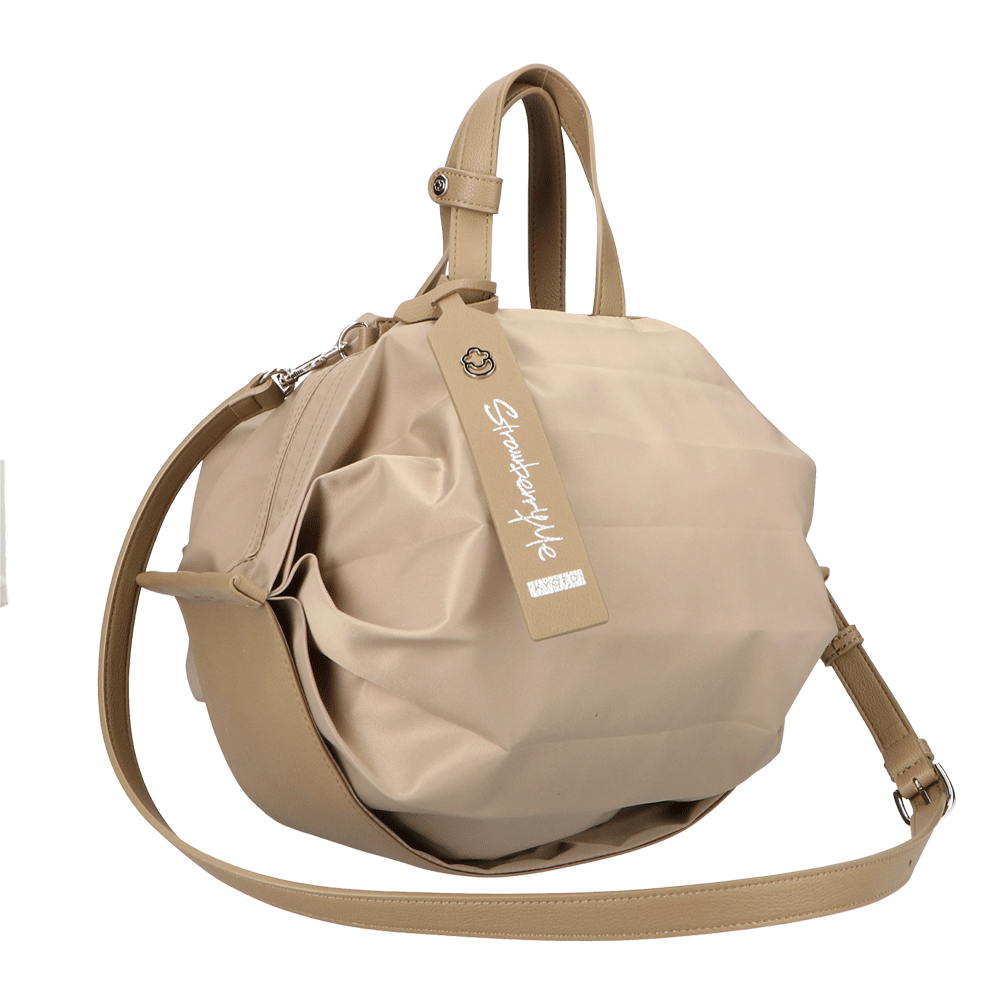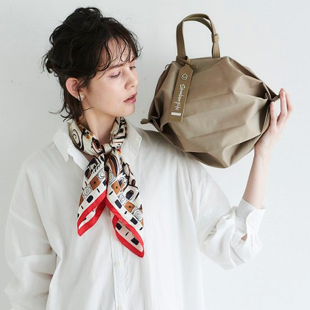 StrawberryMe(ストロベリーミー)(すとろべりーみー)の撥水ナイロン素材の軽量バッグ『チョウチン?M 』。(ちょうちん)(ハンドバッグ)(ショルダーバッグ)(肩がけ)(斜め掛け)(ミディアムバッグ)(ミドルバッグ)(撥水性)(ヴィーガンレザー)(サステナブル素材)(サスティナブル)京都の夜を美しく照らす「提灯」からインスパイアされたバッグ。