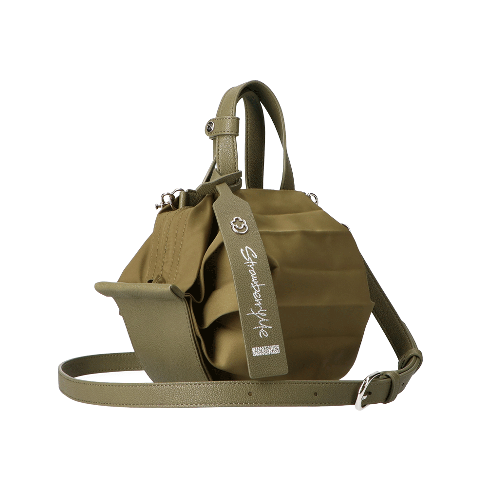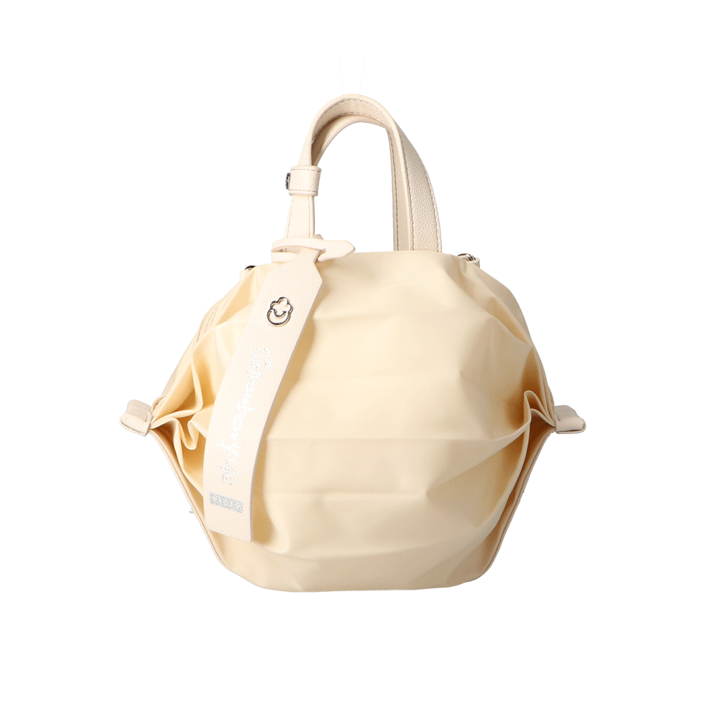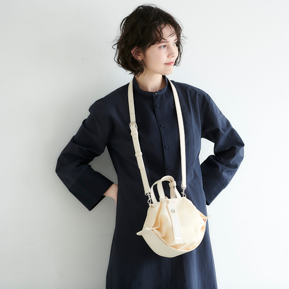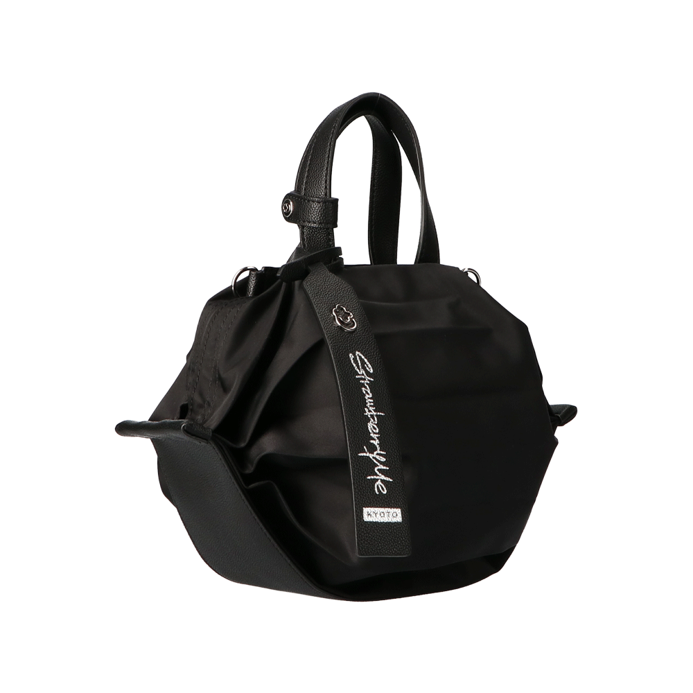StrawberryMe(ストロベリーミー)(すとろべりーみー)の撥水ナイロン素材の軽量バッグ『チョウチン?S 』。(ちょうちん)(ハンドバッグ)(ショルダーバッグ)(ミニバッグ)(ミディアムバッグ)(ミドルバッグ)(ヴィーガンレザー)(サステナブル素材)(サスティナブル)(肩がけ)(斜め掛け)(撥水性)京都の夜を美しく照らす「提灯」からインスパイアされたバッグ。(Sサイズ)