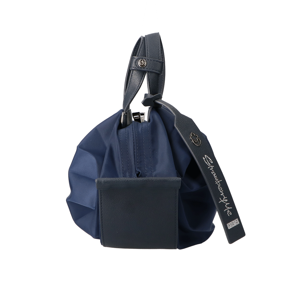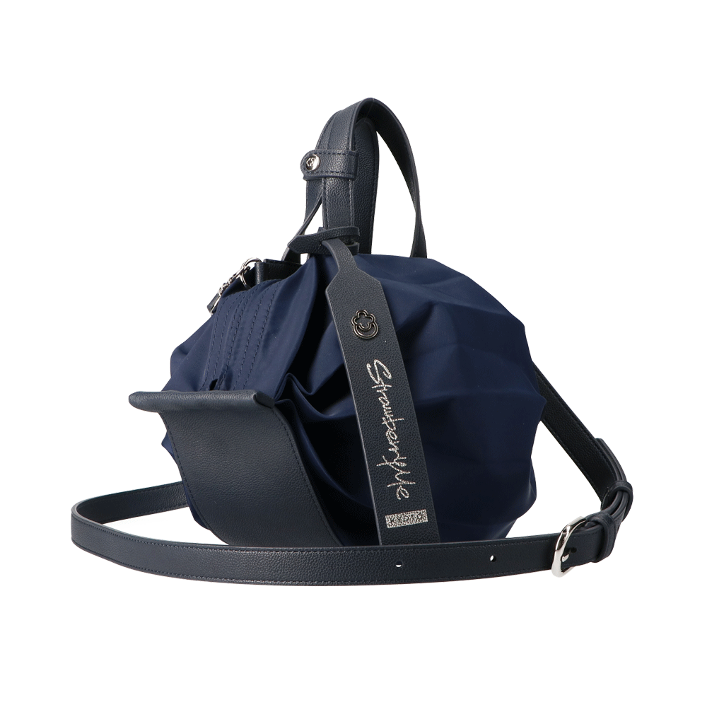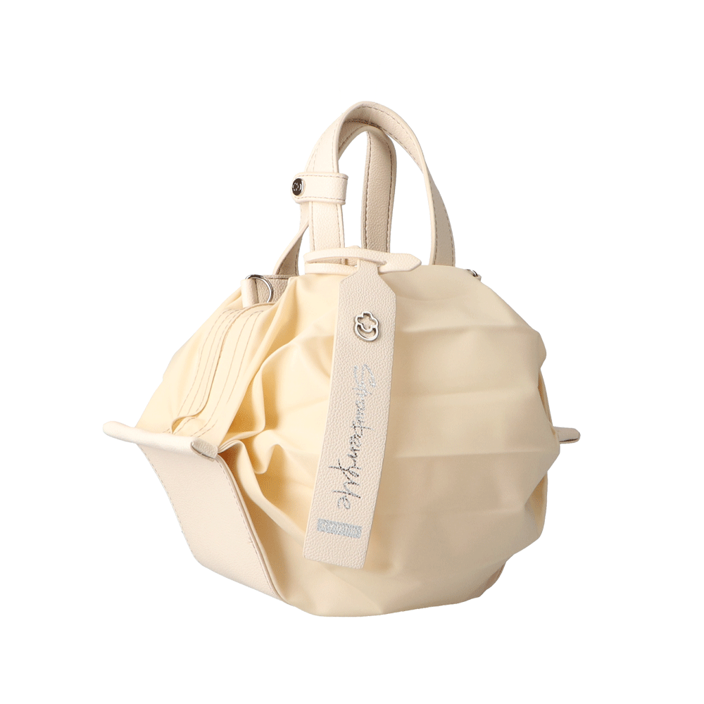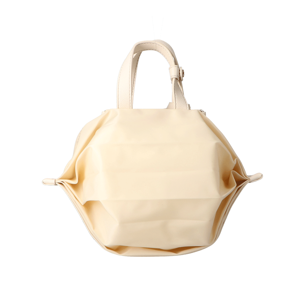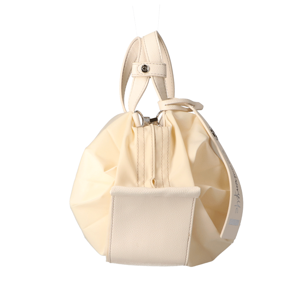 StrawberryMe(ストロベリーミー)(すとろべりーみー)の撥水ナイロン素材の軽量バッグ『チョウチン?S 』。(ちょうちん)(ハンドバッグ)(ショルダーバッグ)(ミニバッグ)(ミディアムバッグ)(ミドルバッグ)(ヴィーガンレザー)(サステナブル素材)(サスティナブル)(肩がけ)(斜め掛け)(撥水性)京都の夜を美しく照らす「提灯」からインスパイアされたバッグ。(Sサイズ)