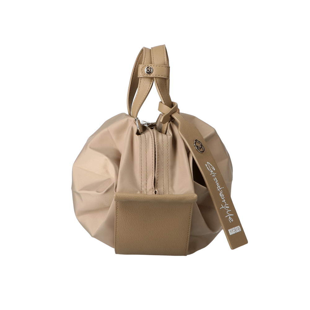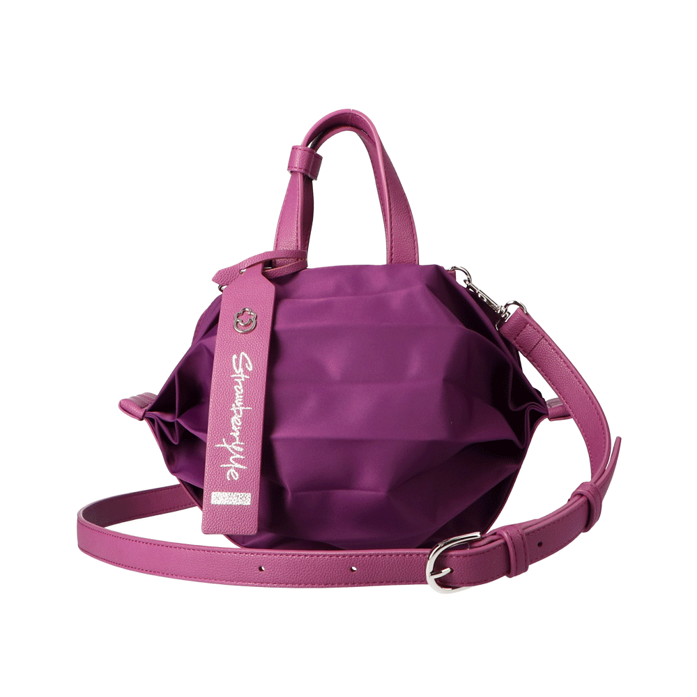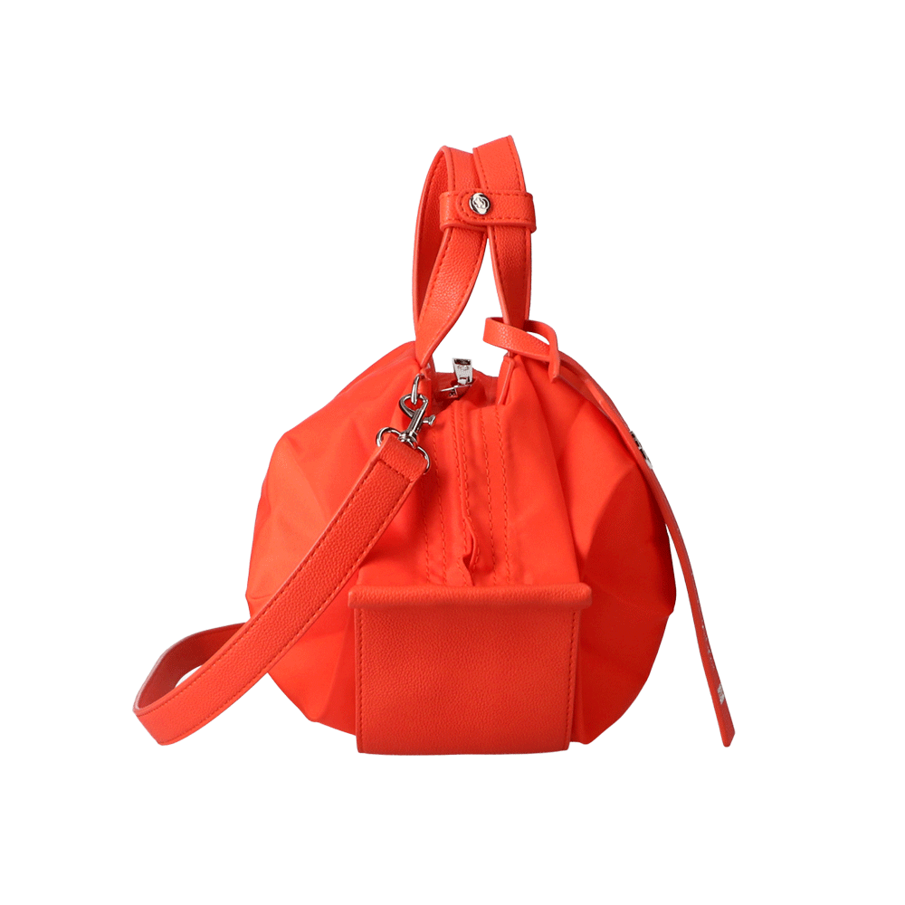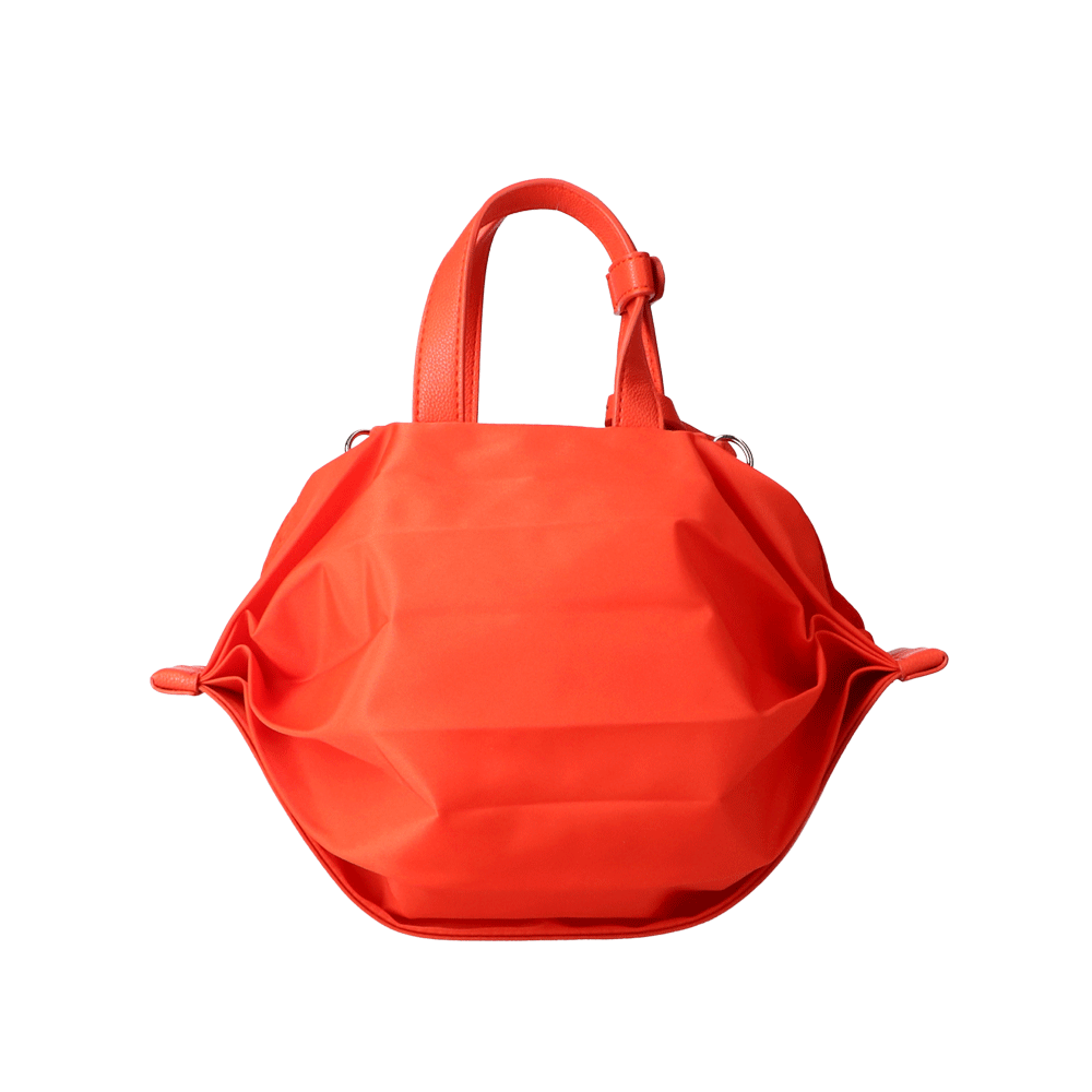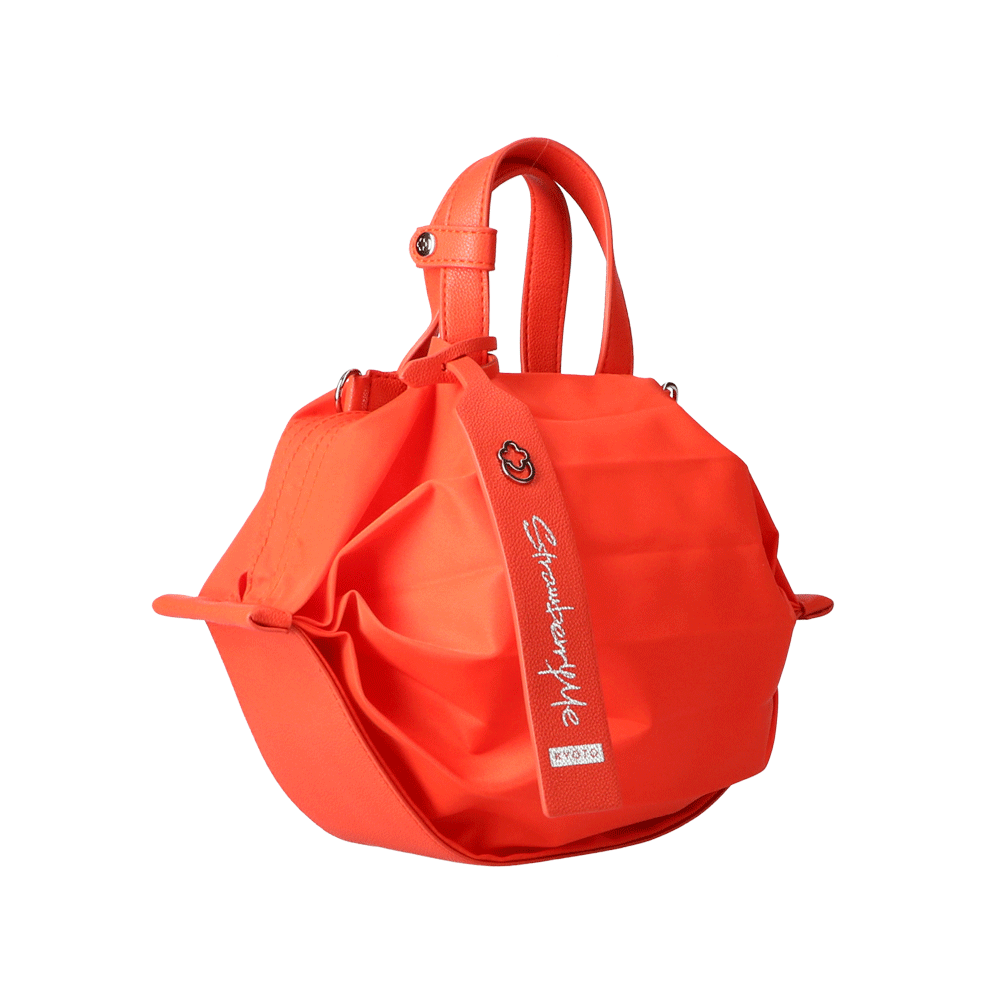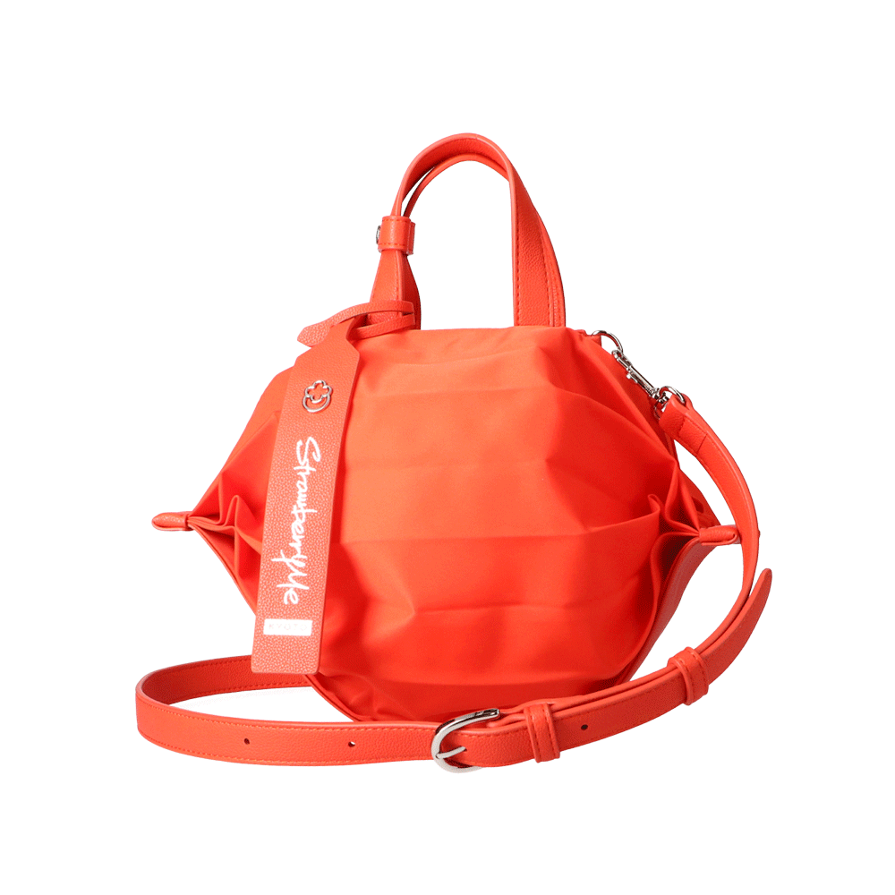 StrawberryMe(ストロベリーミー)(すとろべりーみー)の撥水ナイロン素材の軽量バッグ『チョウチン?S 』。(ちょうちん)(ハンドバッグ)(ミニバッグ)(ミディアムバッグ)(ミドルバッグ)(ショルダーバッグ)(斜め掛け)(肩がけ)(サステナブル素材)(サスティナブル)(ヴィーガンレザー)(撥水性)京都の夜を美しく照らす「提灯」からインスパイアされたバッグ。(Sサイズ)