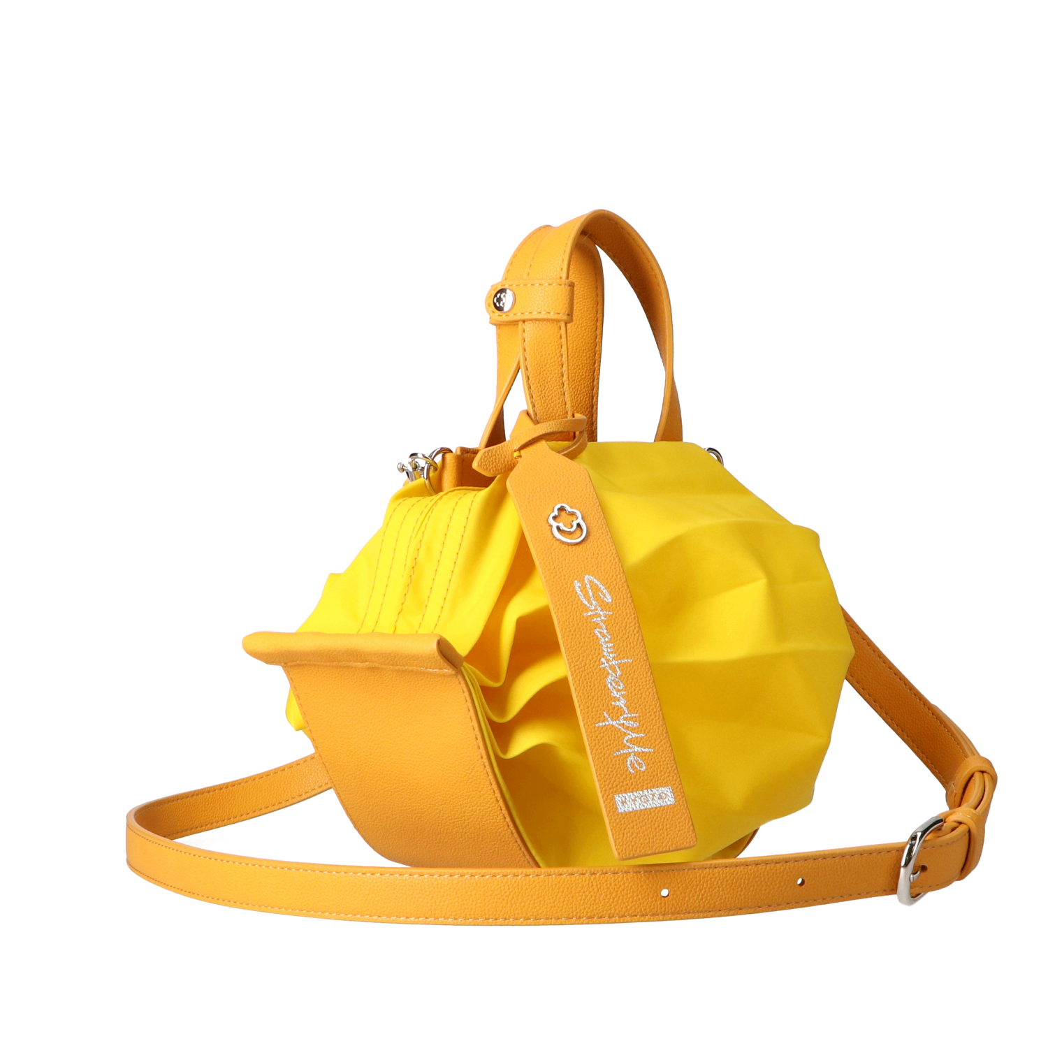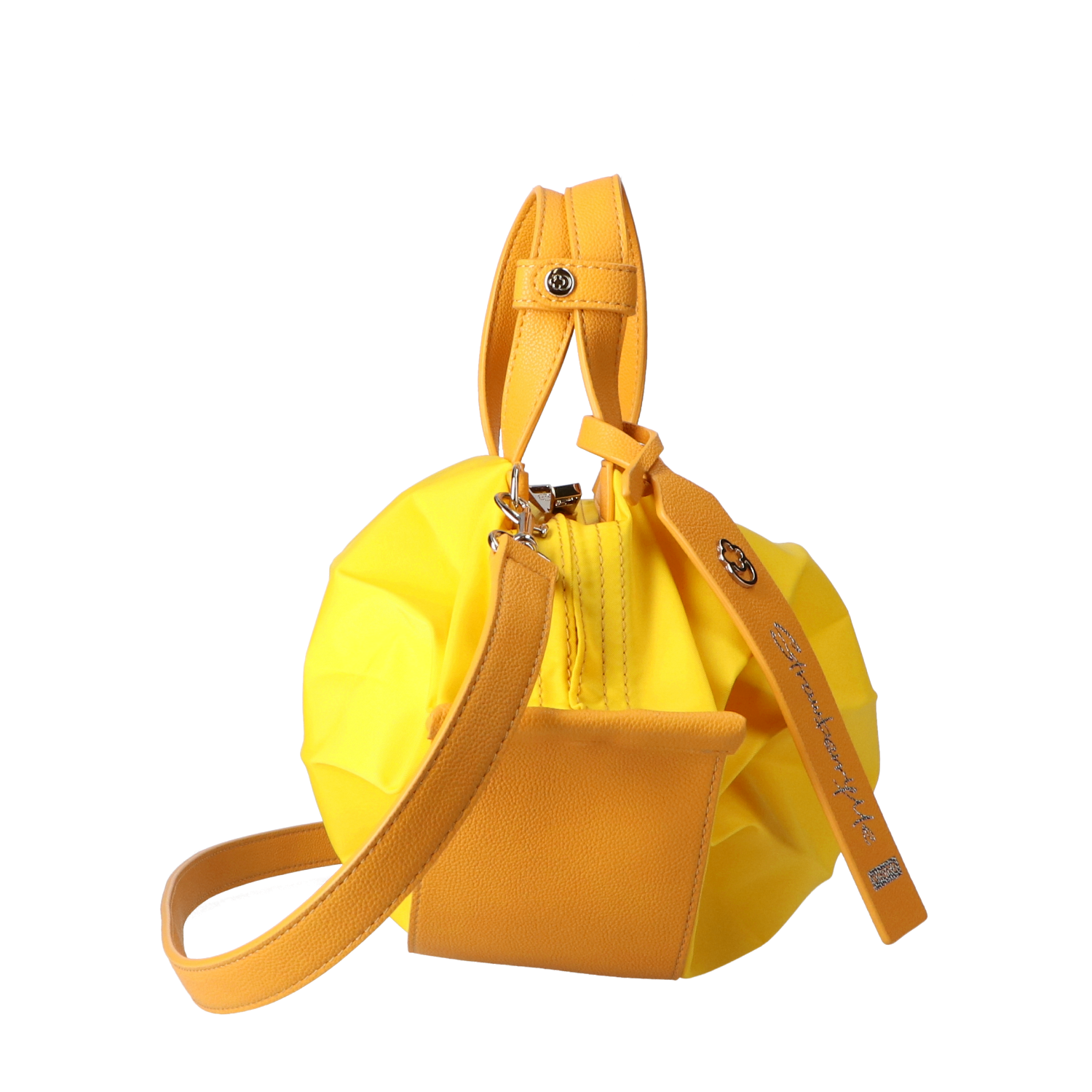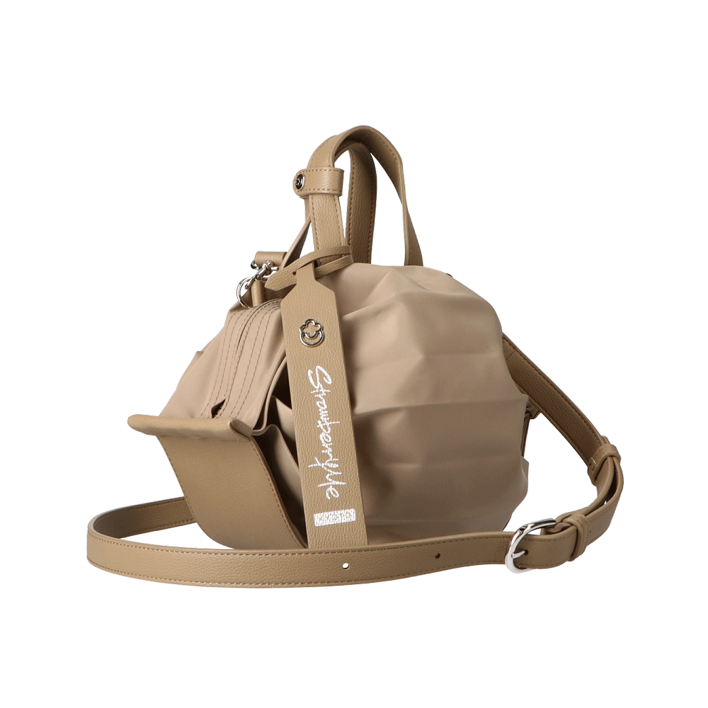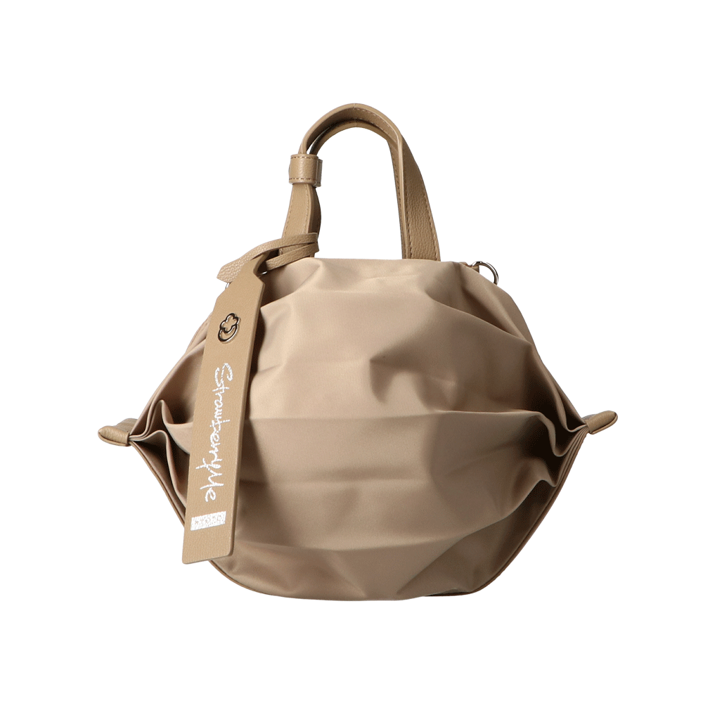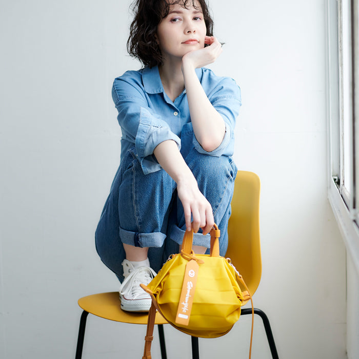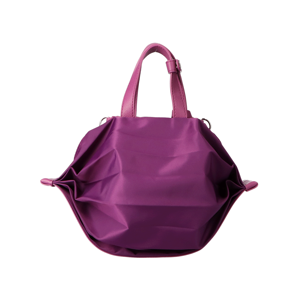 StrawberryMe(ストロベリーミー)(すとろべりーみー)の撥水ナイロン素材の軽量バッグ『チョウチン?S 』。(ちょうちん)(ハンドバッグ)(ミニバッグ)(ミディアムバッグ)(ミドルバッグ)(ショルダーバッグ)(斜め掛け)(肩がけ)(サステナブル素材)(サスティナブル)(ヴィーガンレザー)(撥水性)京都の夜を美しく照らす「提灯」からインスパイアされたバッグ。(Sサイズ)