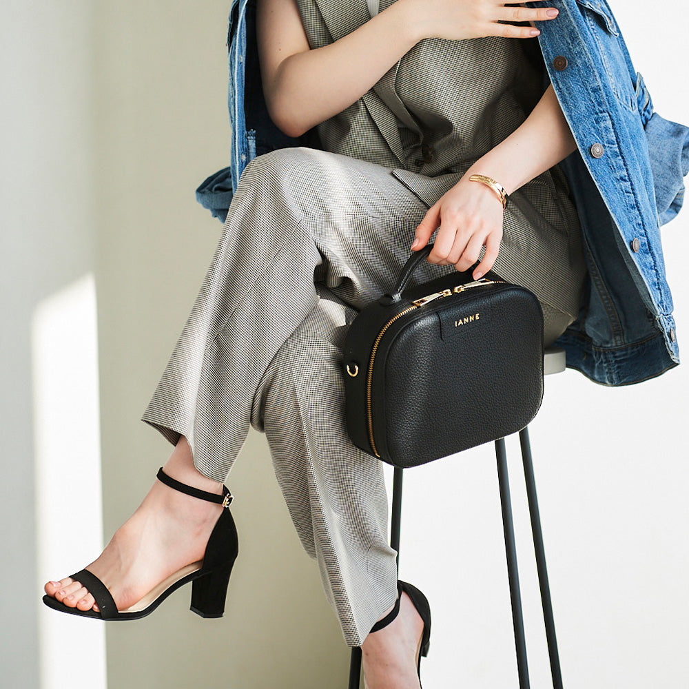 トランクケースをそのまま小さくしたような、丸いフォルムが愛らしい『シュペット(AGS)』。(ハンドバッグ)(ショルダーバッグ)(斜め掛け)(肩がけ)(ミディアムバッグ)(ミドルバッグ)(ミニバッグ)大きく口が開くメインファスナーを開けると、IANNEでお馴染みブラックベリーの内装がデザインされています。ハンドバッグでフォーマルに、付属のショルダーでアクティブに、コーディネートに合わせてさまざまな表情をお楽しみいただけます。(IANNE)(イアンヌ)(いあんぬ)(オリジナルカラー)(オリジナルレザー)(カウレザー)(牛革素材)(ファスナー)