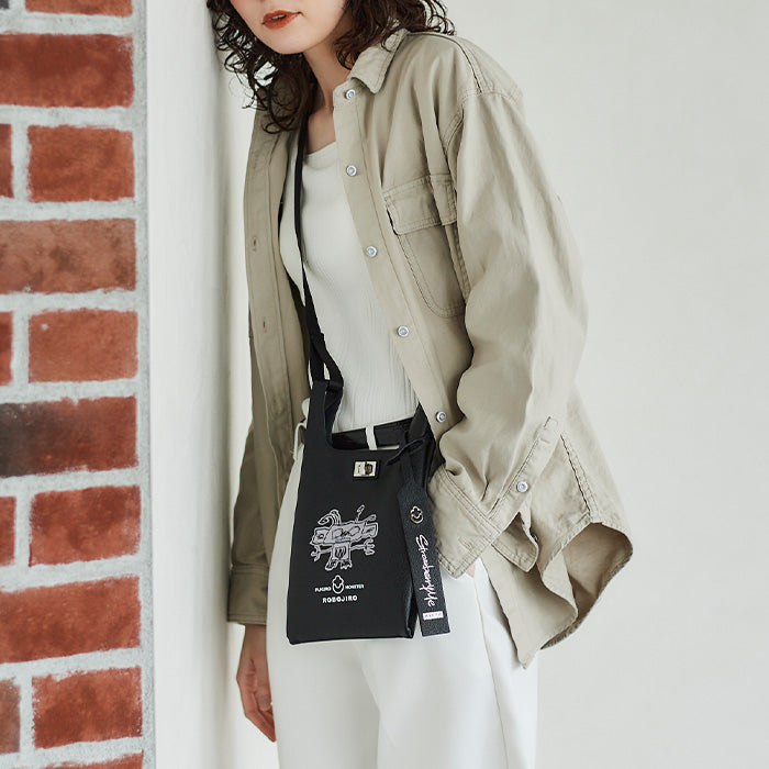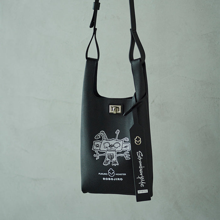 StrawberryMe(ストロベリーミー)の大好評モンスターシリーズ「フクロモンスター」に、可愛いミニサイズ登場?艶感のある撥水機能付きヴィーガンレザー(エコレザー)(フェイクレザー)にポーカーフェイスのロボジローがシックに映えるアートバッグです。ロボジローは、ストロベリーミ―のデザイナーであるイアンヌの可愛い妹、イーマリーちゃんの落書きをそのままデザインに取り入れたんだとか。StrawberryMe(strawberryme)(ストロベリーミー)(すとろべりーみー)(バッグ)(ショルダーバッグ)(ハンドバッグ)(ポシェット)(ミニバッグ)(キャラクター)(アートバッグ)(モンスター)(FUKUROMONSTER)(fukuromonster)(フクロモンスター)(ロボジロー)(ろぼじろー)(ROBOJIRO)(robojiro)