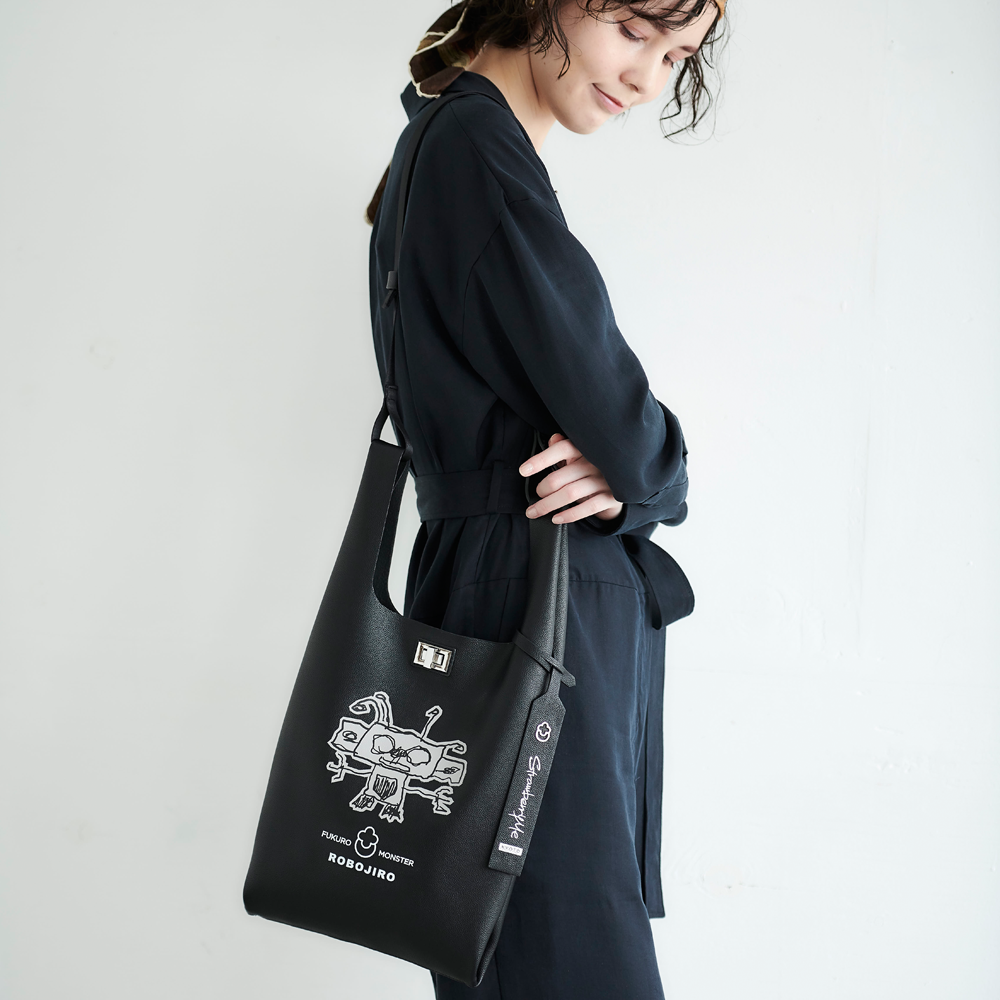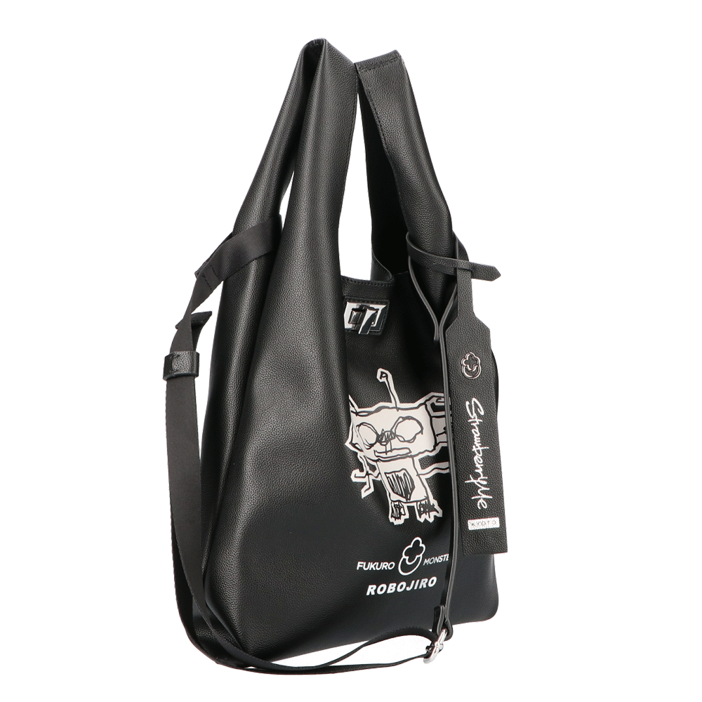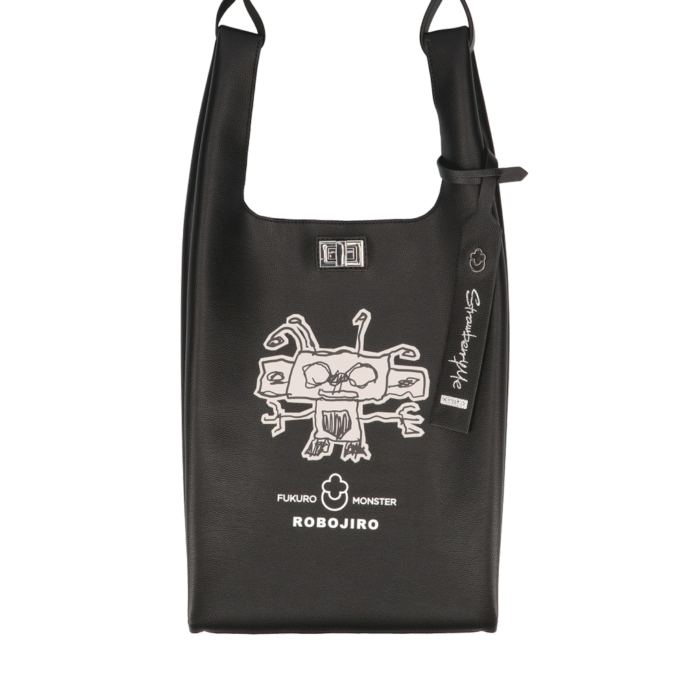 ILEMER(イルメール)(いるめーる)でお馴染みイーマリーの落書きをモチーフにしたStrawberryMe(ストロベリーミー)(すとろべりーみー)のバッグ(ハンドバッグ)(斜め掛け)(ショルダーバッグ)(ヴィーガンレザー)(サステナブル素材)(FUKUROMONSTER?M)『FUKURO?MONSTER/フクロ?モンスター』。ポーカーフェイスな表情に、ちょっぴり曲がった頭のアンテナ?が愛らしい“ロボジロー”のデザイン。(キャラクター)