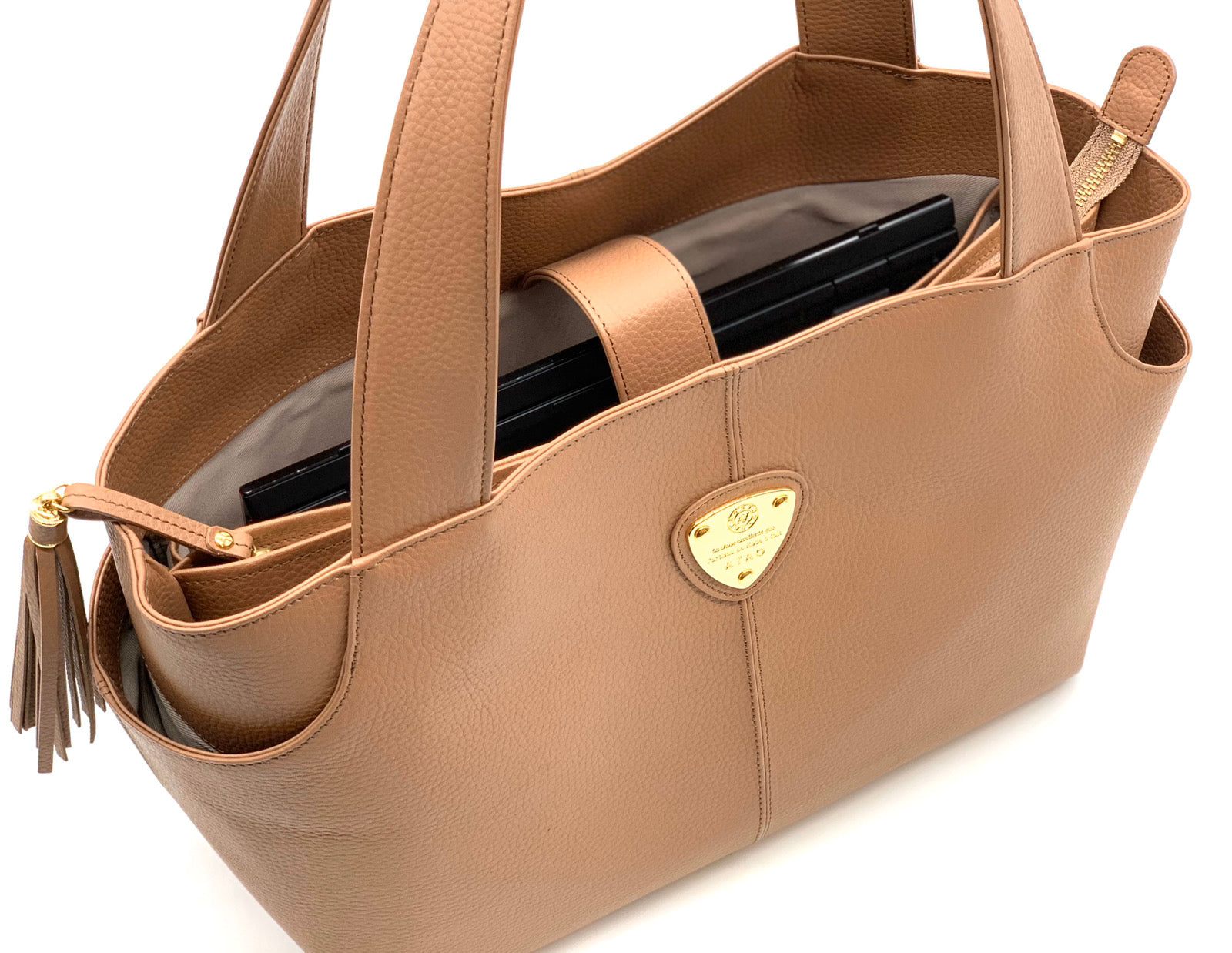 ATAO(アタオ)(あたお)のロングセラーバッグ゛elvy”の進化形防水レザーバッグ『ファンクヴィ』(ファンクビィ)。A4サイズに加え、PCやタブレット等を収納できるクッション材入りポケット付きの機能性と美しさを追求したバッグ。(ハンドバッグ)(ショルダーバッグ)(肩がけ)(ワンショルダー)(カウレザー)(防水性)(牛革素材)(トートバッグ)(A4バッグ)(ビジネスバッグ)