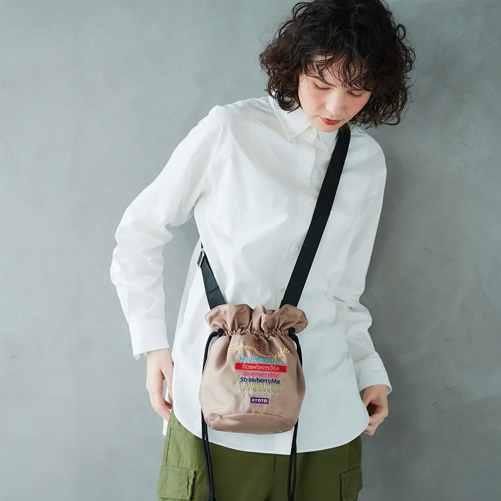 和のエッセンスを取り入れた京都らしさ漂う巾着型ポシェット「KINCHAKU(S)/キンチャク(S)」。しっかりとコシのあるナイロン素材とフロントには様々なフォントのブランドロゴが色鮮やかな刺繍によってデザインされています。キュッと絞ったシルエットが小ぶりで可愛く、和装にもピッタリ。ポシェットに最適なコンパクトサイズで、バッグを斜め掛けで楽しみたい方にもオススメです。巾着の紐をショルダーにして斜め掛けとしてはもちろん、スマホショルダーやインバッグとしてもお楽しみいただけます。
