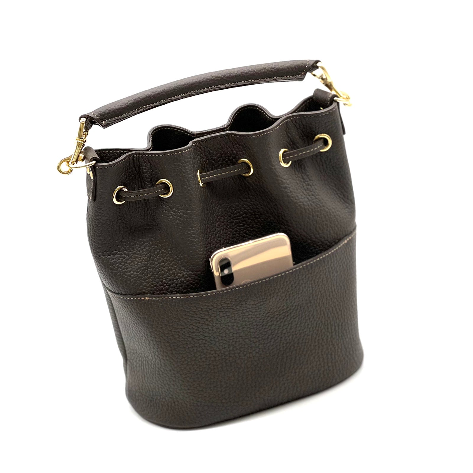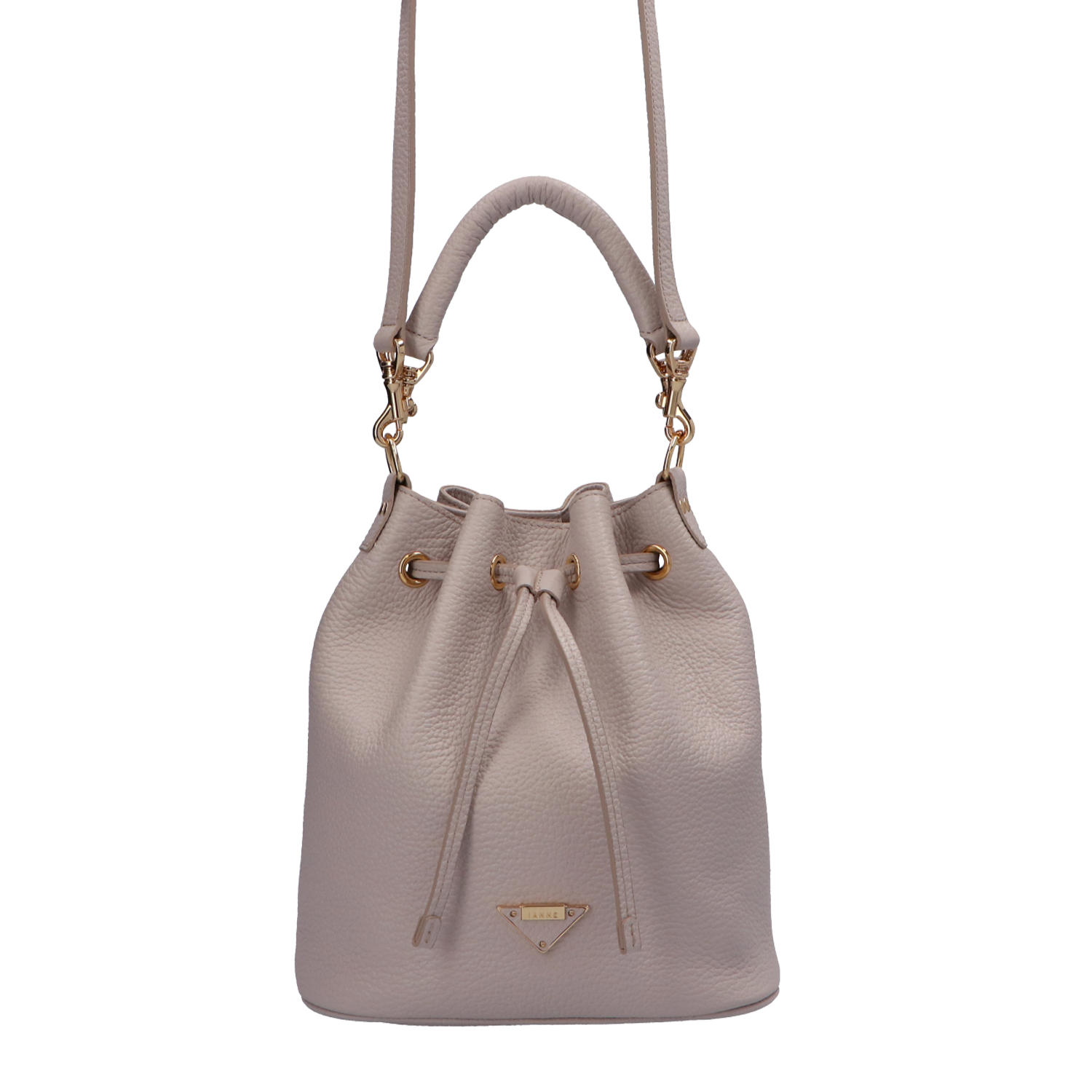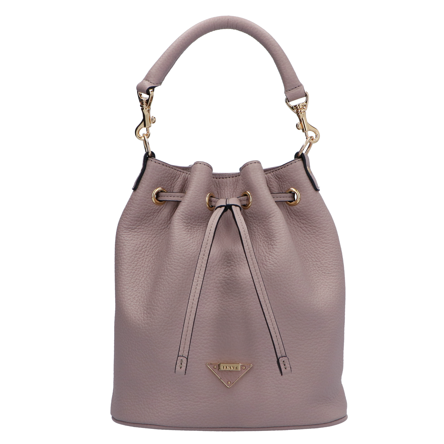 IANNE(イアンヌ)(いあんぬ)のモダンな縦型巾着バッグ『ルシール』。(ハンドバッグ)(ショルダーバッグ)(斜め掛け)(ミディアムバッグ)しっかりとコシもありしなやかなドレープは、上品さの中に大人の余裕を感じさせる抜け感をプラスしてくれます。(グリーシエル)(グリシエル)