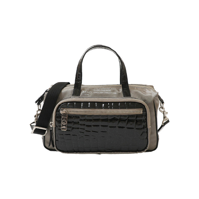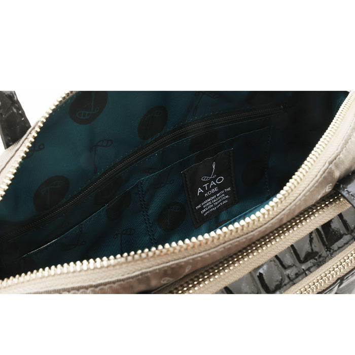 ゴルフブランドとして誕生したATAO GOLF。今季のシーズンでは、新ライン「スマルトシリーズ」。イタリアンレザーとナイロン素材を組み合わせ、晴れの日も雨の日も思うがままに。シンプルなアイテムトーンは、ゴルフプレーはもちろん日常でも愉しめます。どこでどのようにアイテムを取り入れるか、あなた次第。ここが原点であり、あたらしい日常への入り口です。上質で光沢感のあるイタリアのエナメルレザーとナイロンを組み合わせ、職人による手仕事で生産したこだわりのバッグとなります。エナメルはイタリア語で「スマルト」と呼ぶことから、シリーズ名が誕生。急な天候の変化にも対応できる撥水加工の機能性に加え、持ち運びしやすい設計デザインとスマートなシルエットは、移動中などの気分を上げてくれること間違いなしです。カートでの移動中など、必須アイテムの持ち運びに便利なサイズ感です。ちょっとしたお出かけの時にも。(ATAOGOLF)(アタオゴルフ)(あたおごるふ)(男女兼用)(ユニセックス)(男性も使える)(メンズ)(smalt mini tote bag)(スマルトミニボストンバッグ)(ミニバッグ)(ハンドバッグ)(ショルダーバッグ)(斜め掛けバッグ)(ワンショルダー)(肩掛けバッグ)