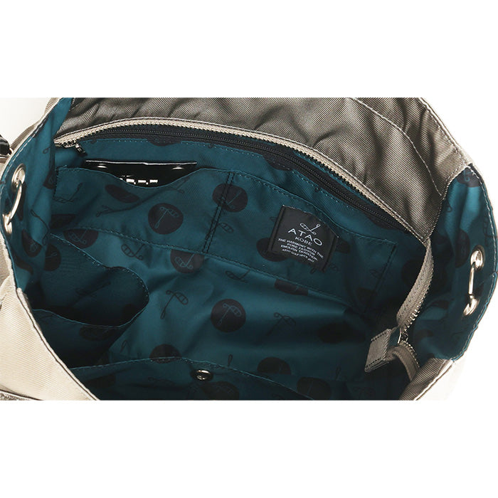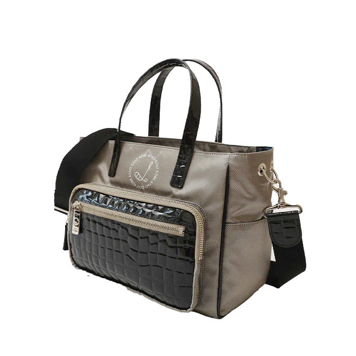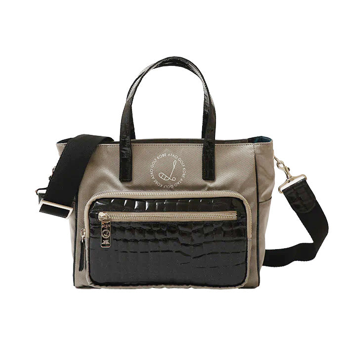 ゴルフブランドとして誕生したATAO GOLF。今季のシーズンでは、新ライン「スマルトシリーズ」。イタリアンレザーとナイロン素材を組み合わせ、晴れの日も雨の日も思うがままに。シンプルなアイテムトーンは、ゴルフプレーはもちろん日常でも愉しめます。どこでどのようにアイテムを取り入れるか、あなた次第。ここが原点であり、あたらしい日常への入り口です。上質で光沢感のあるイタリアのエナメルレザーとナイロンを組み合わせ、職人による手仕事で生産したこだわりのバッグとなります。エナメルはイタリア語で「スマルト」と呼ぶことから、シリーズ名が誕生。急な天候の変化にも対応できる撥水加工の機能性に加え、持ち運びしやすい設計デザインとスマートなシルエットは、移動中などの気分を上げてくれること間違いなしです。ラウンド中の移動やタウンユースでも使いやすいサイズ感のトートバッグ。(ATAOGOLF)(アタオゴルフ)(あたおごるふ)(男女兼用)(ユニセックス)(メンズ)(男性も使える)(デイリーユース)(普段使い)(バッグ)(ハンドバッグ)(ミディアムバッグ)(撥水素材)(撥水性)(エナメル)(雨の日も使える)(撥水バッグ)(スマルトラウンドトート)(smalt round tote)