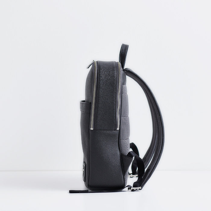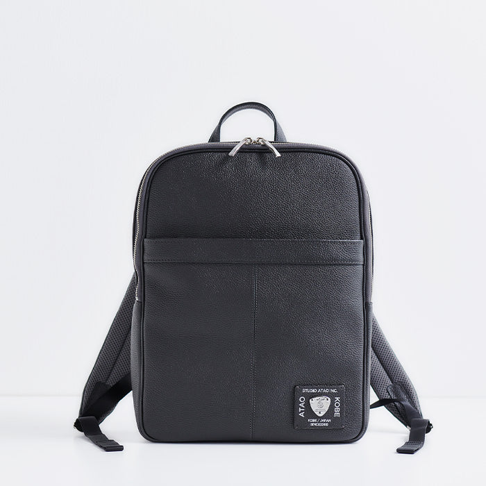 機能的なビジネスリュック「SOU!」登場。オールレザーのリュックの割に軽量。プライベート空間とビジネス空間の二層に分かれたファスナーポケットが特徴のセパレートデザイン。一方にはコスメポーチやストッキング、ちょっとした食べ物等のプライベートグッズを、もう一方にはPC専用ボンディングポケットにノートパソコンなら13インチまで、タブレット、A4ファイル、名刺入れ等、ビジネスに必要な荷物をイン。スーツスタイルで背負った際にも大きく見えずにスッキリ見えします。女性だけでなく男性も持ちやすいデザイン。ビジネスシーンにもサラリと馴染むハイニッケルのシルバー金具を採用している。ATAO(アタオ)(あたお)(SOU!)(ソウ)(そう)(バッグ)(リュック)(バックパック)(ビジネスバッグ)(防水)(防水レザー)(3M)(ノートパソコン用ポケット)(タブレット用ポケット)(ボンディングポケット)(A4)(男女兼用)(ユニセックス)